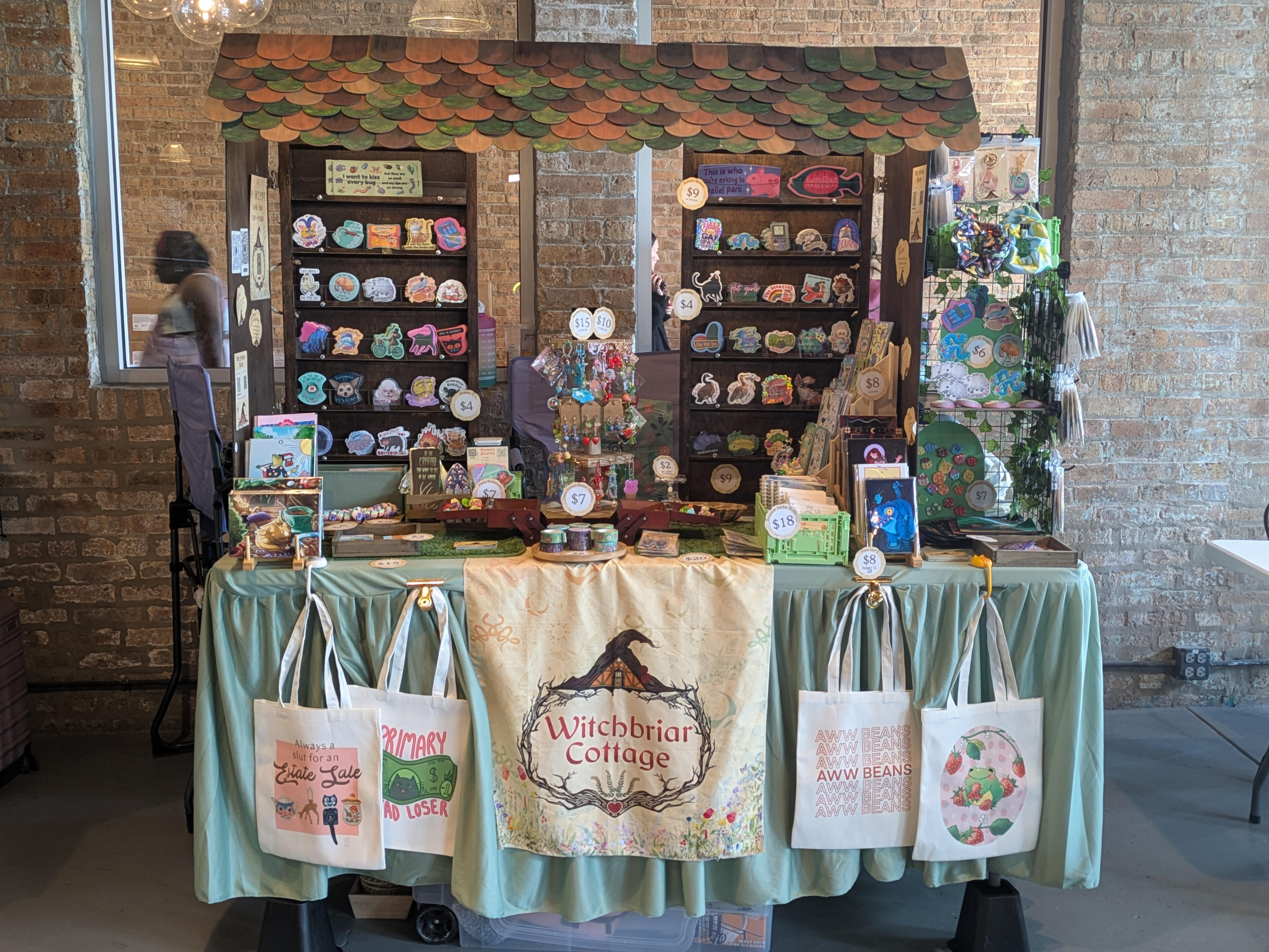 Witchbriar Cottage is primarily a sticker shop, and was begun in August 2023 by two artist friends (Katu and Cas) with a desire to stop drawing backgrounds for their art. Well, that's partly true.We are a woman-owned, disabled-owned small business based out of Southeastern Wisconsin. Our art ranges from the weirdly cute to the adorably bizarre, with subjects that range from the natural world to the magical one.We sell primarily at in-person popups, but we also have an online shop via Etsy, where you can find almost all of the same products. Our stickers are made 100% in-house, the old fashioned way. We take great pride in our work and we hope you like it!